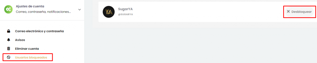 En Editar mi información presiona Usuarios bloqueados y luego Desbloquear