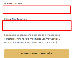 Completa tu nueva contraseña y la repetición de la misma, posteriormente presiona en Restablecer la contraseña